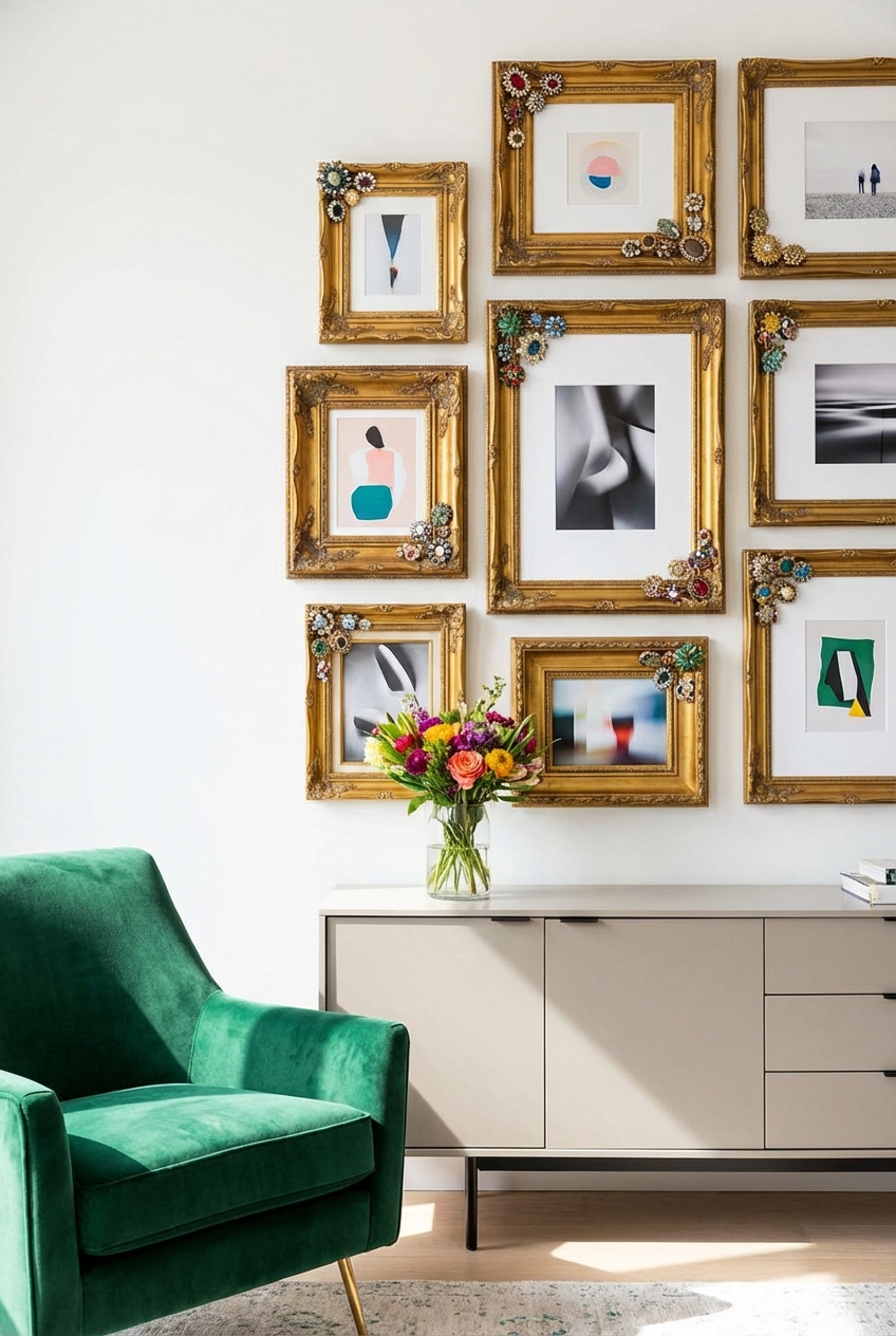 I remember my first “real” design project where the client had sleek, Italian leather furniture but inherited a box of crumbling, Victorian-era frames. Instead of hiding them, we leaned into the clash. We cleaned them up, floated modern abstract sketches inside, and hung them with exposed brass chains. That juxtaposition is what we call the “Brooched” look—treating wall decor like heavy, intricate jewelry on a simple black dress.