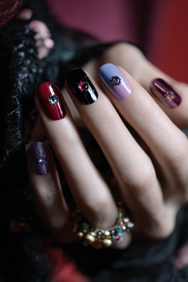 When adopting bold Wednesday Addams nails, it’s important to harmonize them with your personal style and body type. Nails don’t exist in isolation: their shape, length, and decoration should complement your hand shape, skin tone, and the overall silhouette of your outfit.