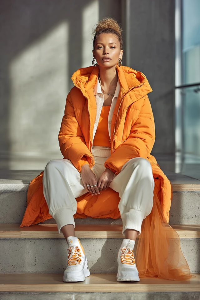 Neutral Colors: Blacks, whites, and creams are classic power players. A black puffer coat, when tailored well, can convey authority and sophistication. Cream or beige tones offer an elegant softness that complements diverse skin tones and creates an inviting aura.