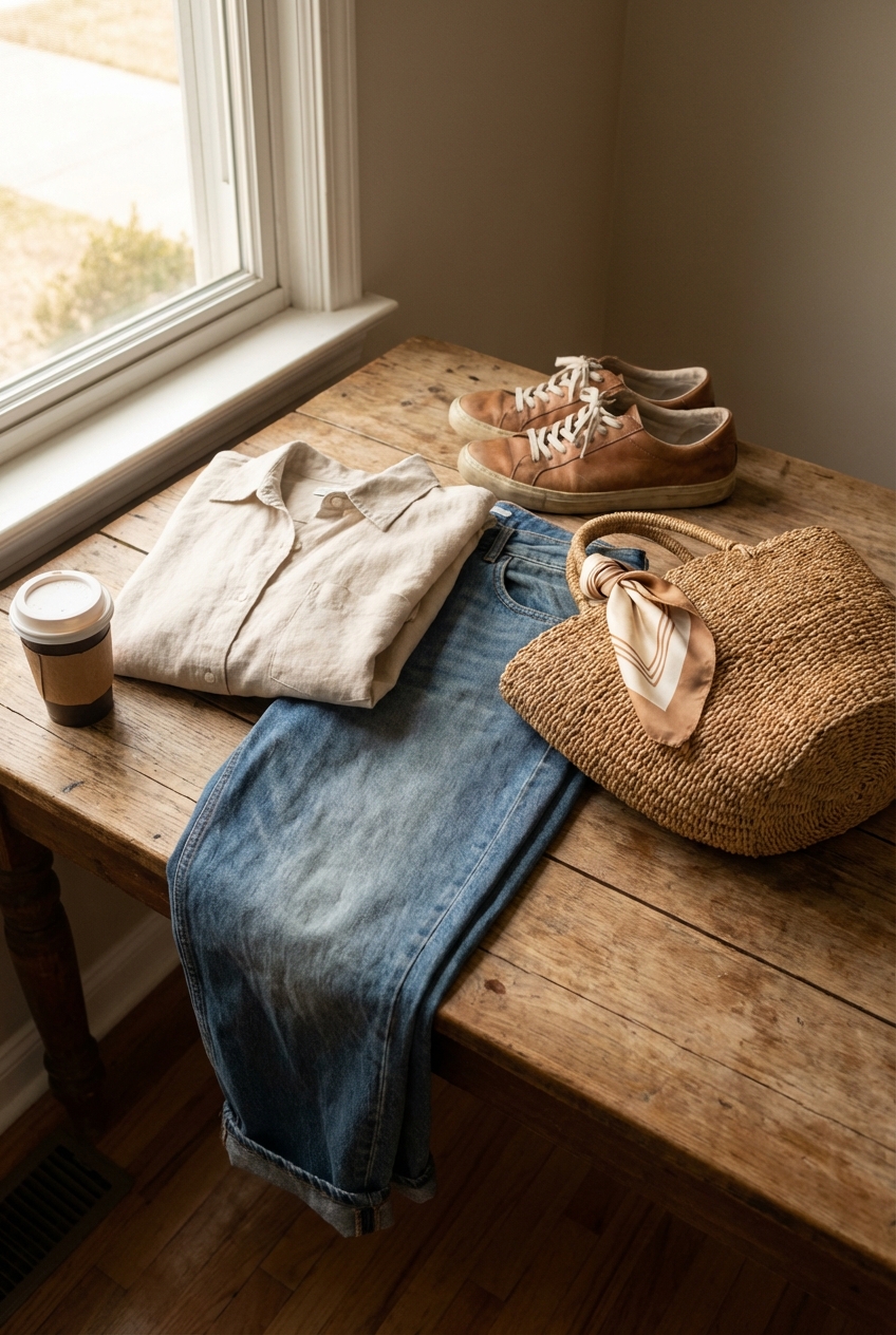 The “Third Piece Rule” is a stylist secret weapon. An outfit consisting of a top and pants is “dressed.” Adding a third piece—a cardigan, a denim jacket, or a lightweight trench—makes the outfit “styled.”