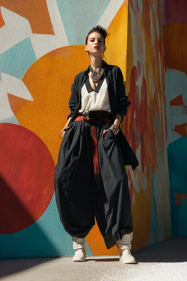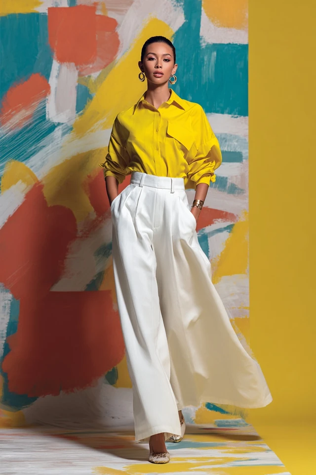 - Taller builds: Almost any silhouette works well; however, exaggerated wide-leg pants in striking colors or prints can showcase height impressively.