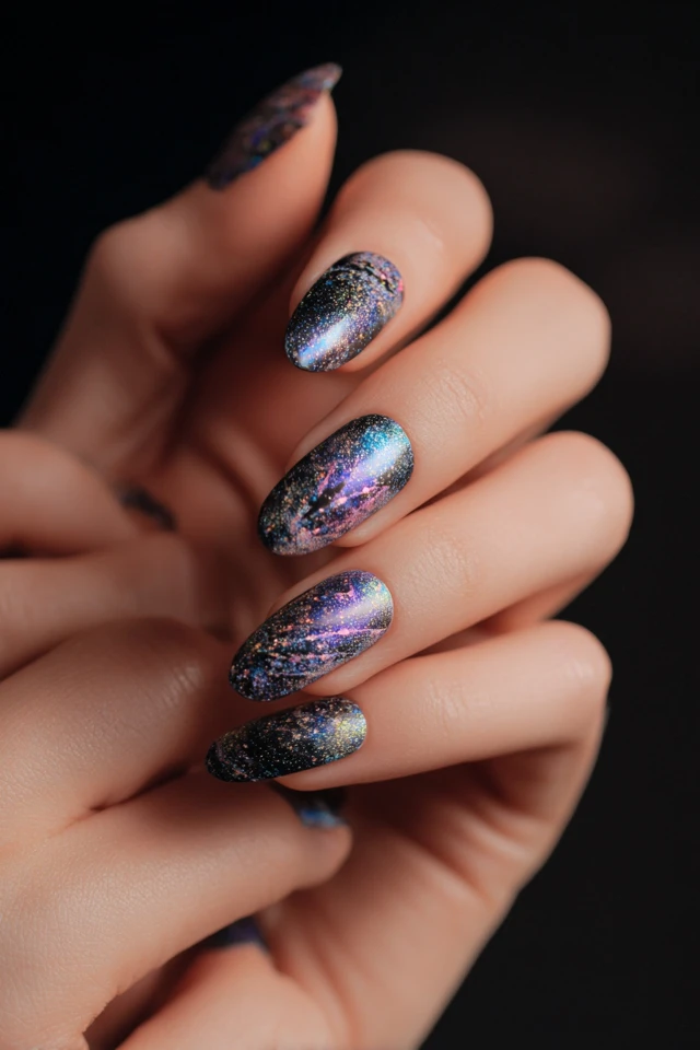When considering body type and complexion, it’s helpful to think holistically. Celestial rainbow holo nails have a chameleon finish that can subtly complement a variety of skin tones due to their range of reflected hues, yet some nuances can enhance this even further: