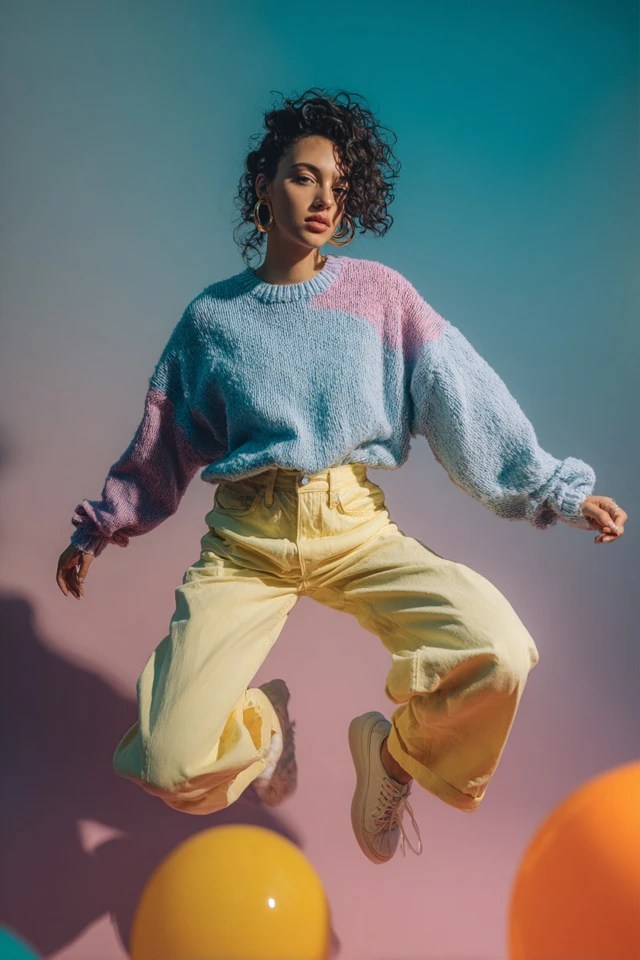 Neutral and Pastel Colors: For those easing into colorful denim, lighter pastels or beige hues create subtle mood enhancements without overwhelming. Pastel pink or mint jeans keep your outfit soft and approachable while still vibrant.