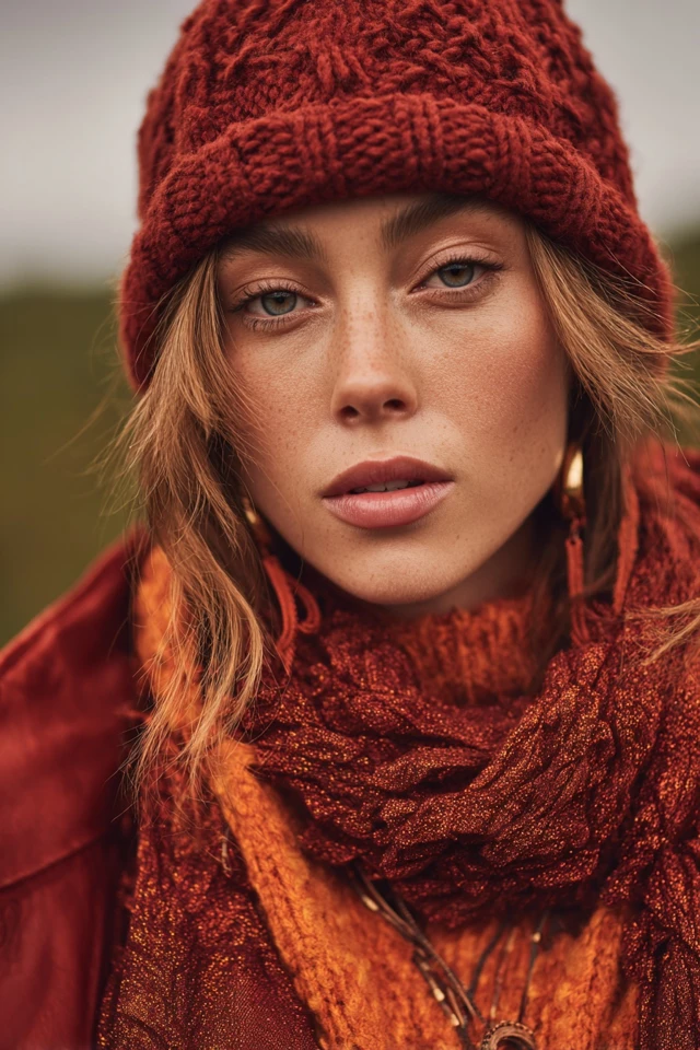 This fall, layering accessories marry nostalgic charm with modern versatility. Trending colors include muted sienna, dusty mauve, and sage green, reflecting a renewed connection to nature and sustainability values. Chunky knit scarves and oversized berets dominate, encouraging cozy, expressive layering.