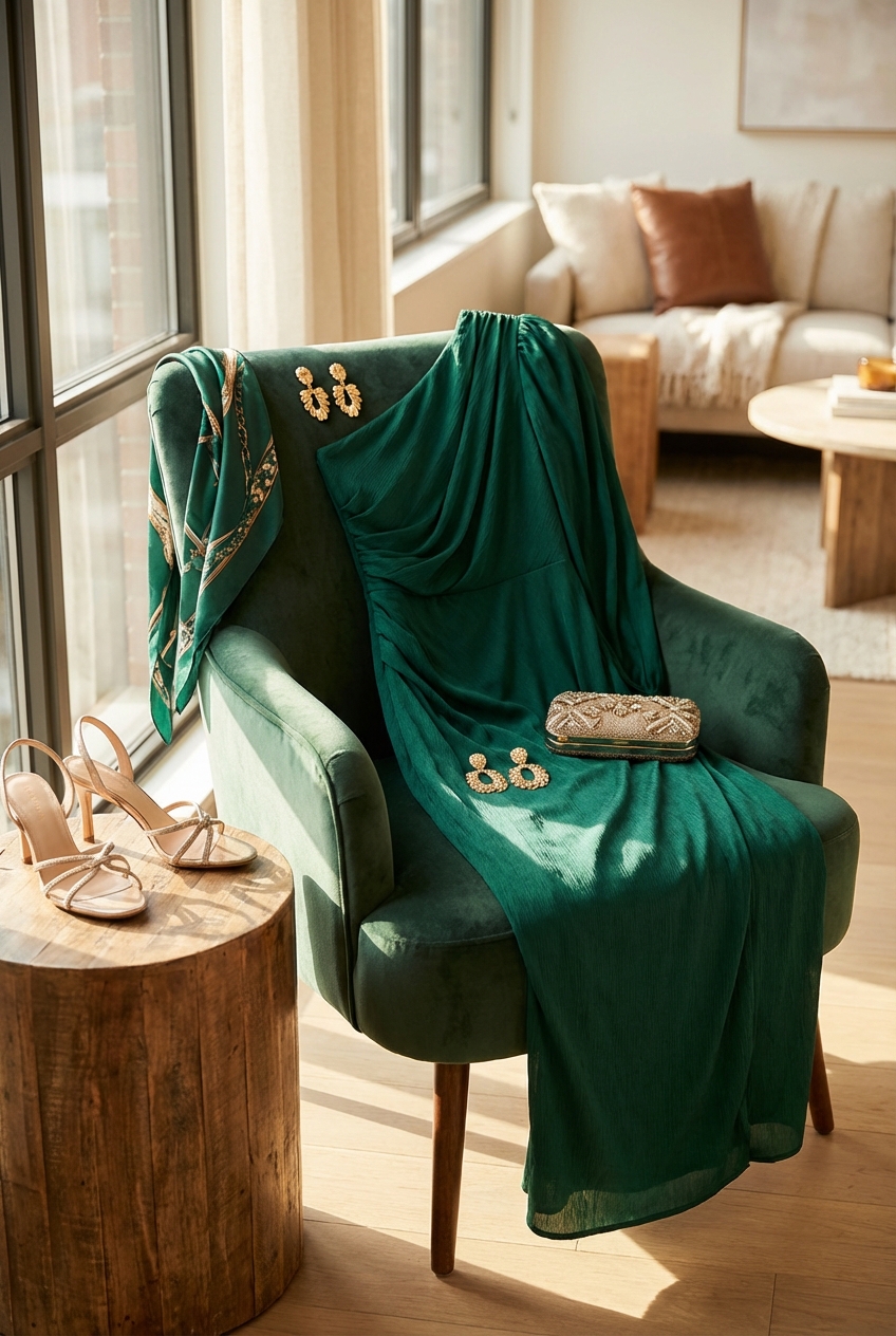 Because the dress draws the eye upward, keep the shoe sleek. A strappy sandal or a classic pointed-toe pump is best. Avoid heavy ankle boots or chunky platforms, as they fight for attention with the neckline.
