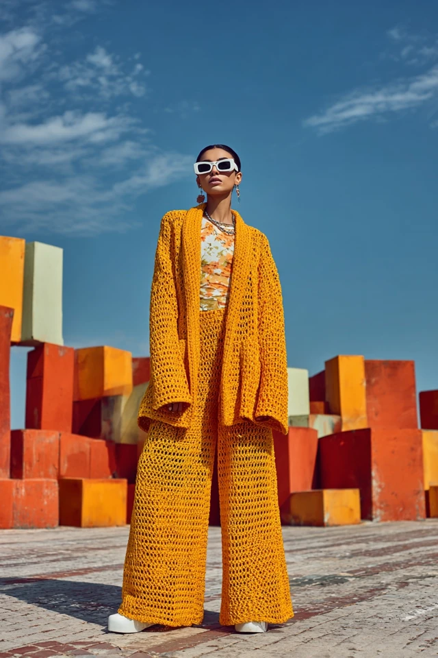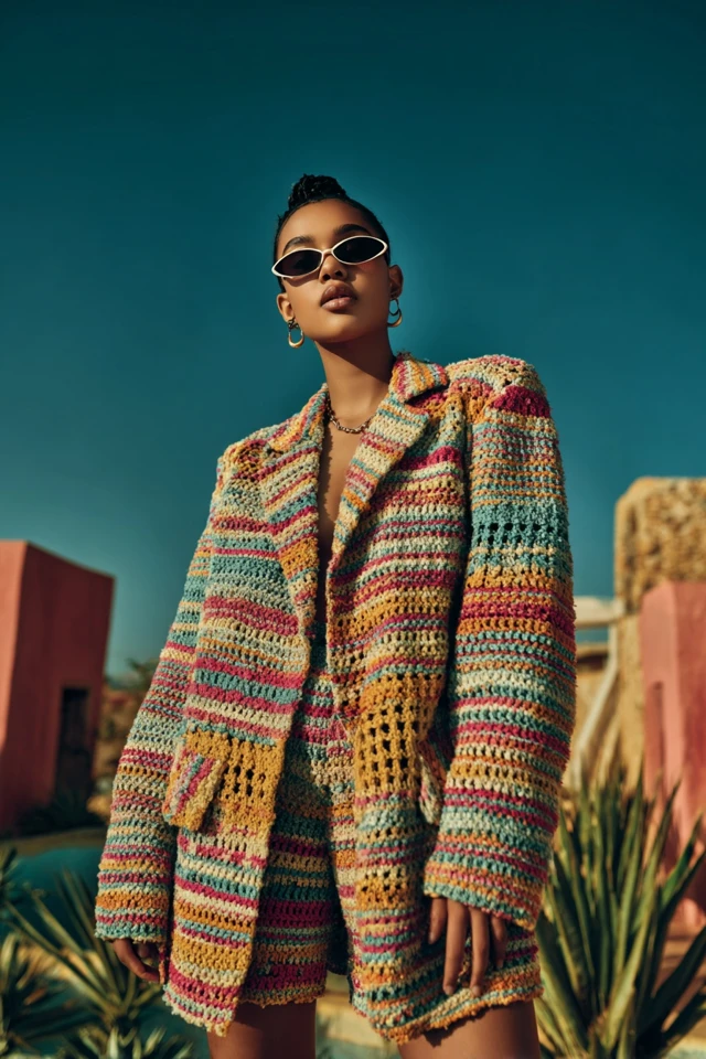 Blending the newest trends with timeless classics creates a balanced wardrobe that feels both fresh and grounded. For instance, pair your earthy crochet blazer with a classic white shirt and tailored pants to maintain a polished look with a bohemian twist.