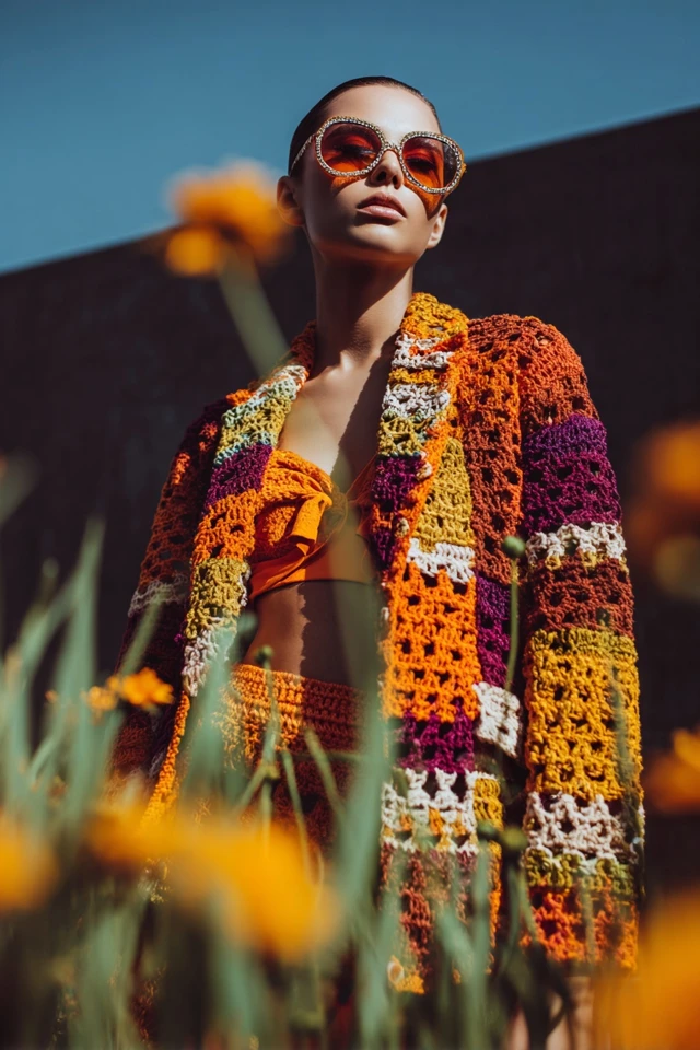 Blending the newest trends with timeless classics creates a balanced wardrobe that feels both fresh and grounded. For instance, pair your earthy crochet blazer with a classic white shirt and tailored pants to maintain a polished look with a bohemian twist.
