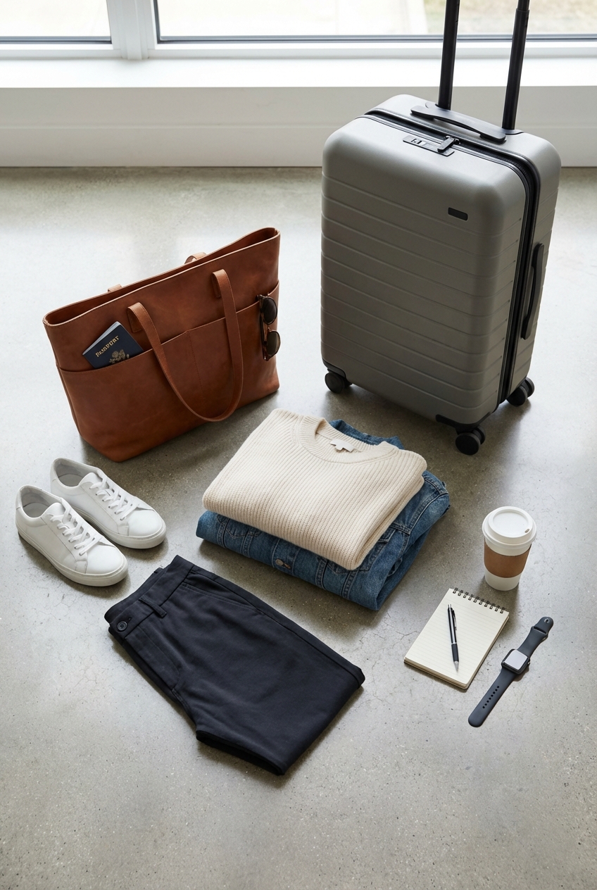 Your carry-on bag is part of the outfit. A structured leather tote or a high-end backpack elevates the look. Avoid flimsy canvas bags that look sloppy. The bag should hold its shape when placed on the floor.