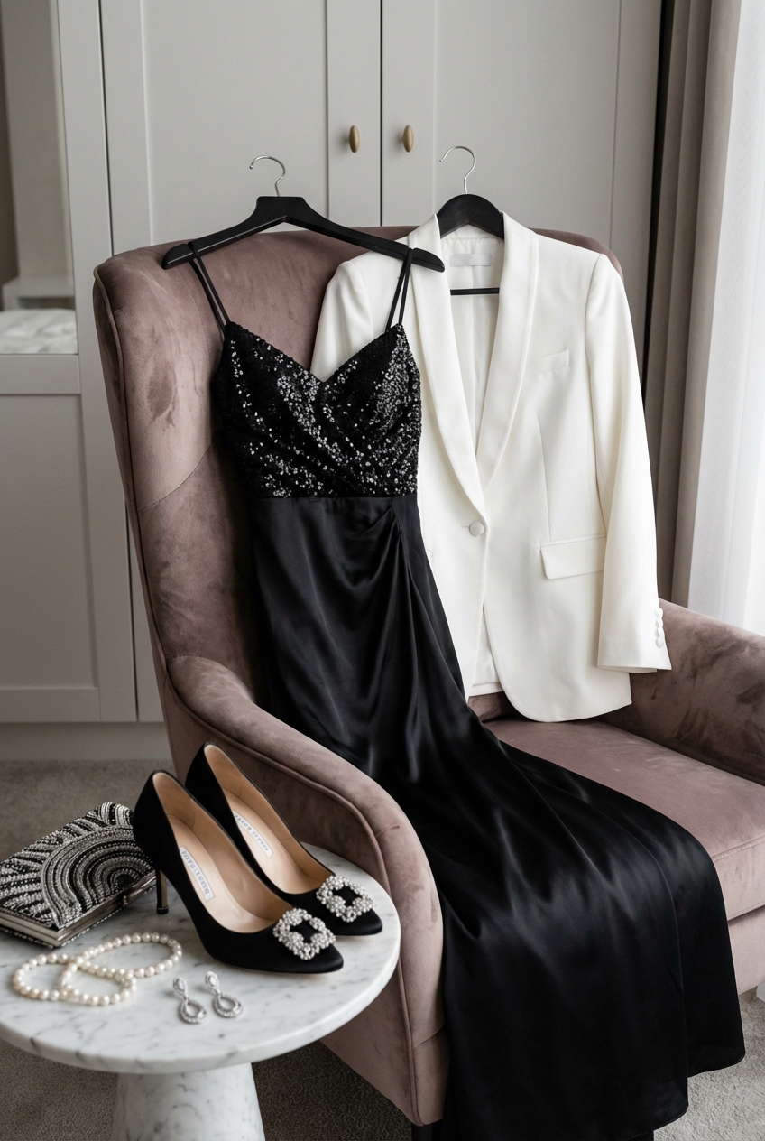 When you strip away color, texture becomes the most important element of your look. A flat black cotton-blend dress next to a flat white wrap looks like catering staff uniforms, not high-society gala attire. You must introduce depth through material richness.