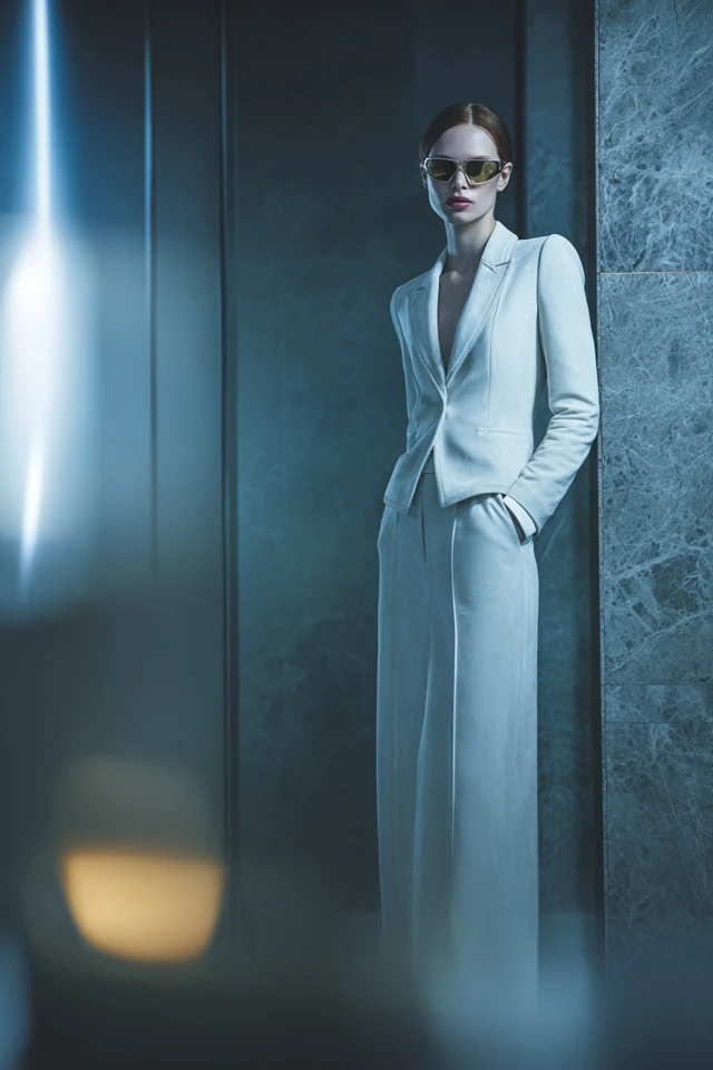 Mystic quicksilver is a tone that sits delicately between silver, slate, and fog—cool, elusive, and imbued with a sense of refined mystery. When rendered in suede, a material known for its texture and softness, it becomes something truly special: tactile, visual, and undeniably luxurious. It’s not your typical eveningwear, but that’s precisely why it works. It’s new. It’s bold. And yet, it’s deeply grounded.