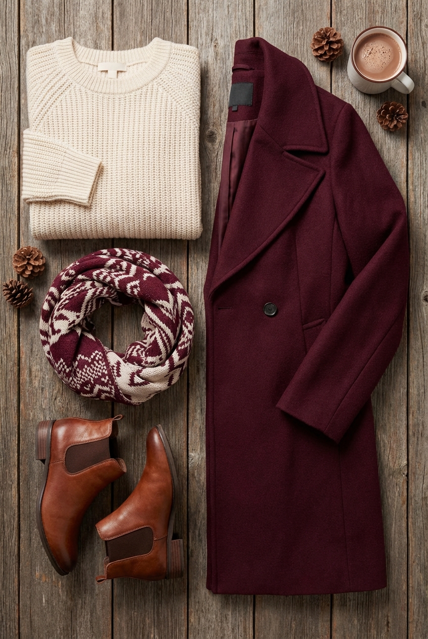Pairing Rich Burgundy With Cream For Elegant Winter Looks