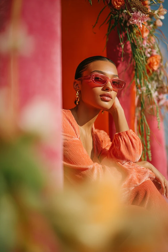 2. Ground the brightness: Pair papaya with neutrals like white, sand, camel, or even muted mint. These tones complement the warmth without competing.