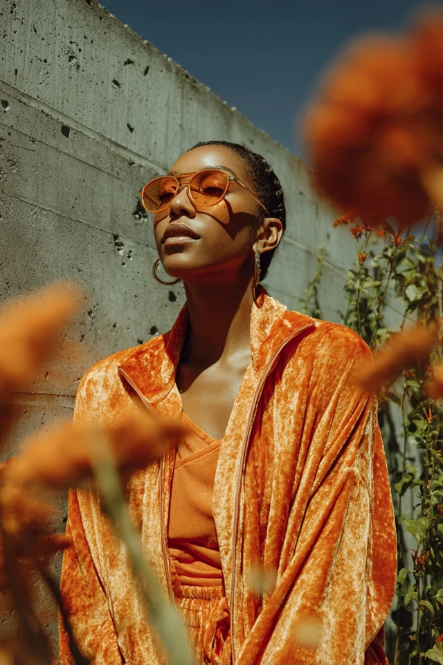 Unlike red (which can feel aggressive) or hot pink (which can skew too youthful for some), papaya hits that sweet spot. It’s cheerful without being overwhelming. When done in velour, it adds a hint of glam while still feeling wearable for daytime. And because it’s a color not everyone gravitates toward, it helps you stand out without screaming for attention.