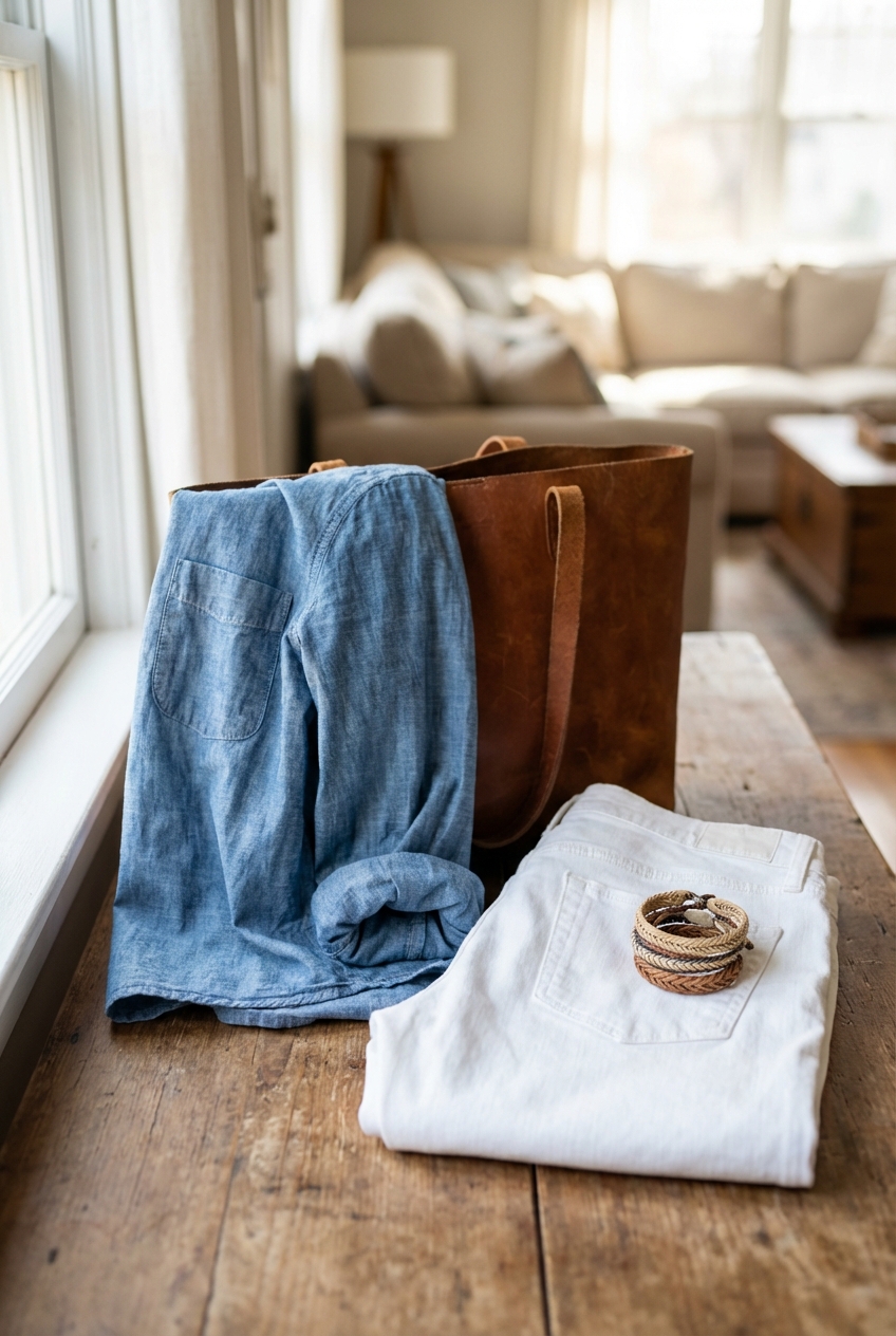 Since a chambray shirt is inherently casual, your accessories dictate the final formality of the outfit. You can dress it up or down instantly just by changing your jewelry and shoes.