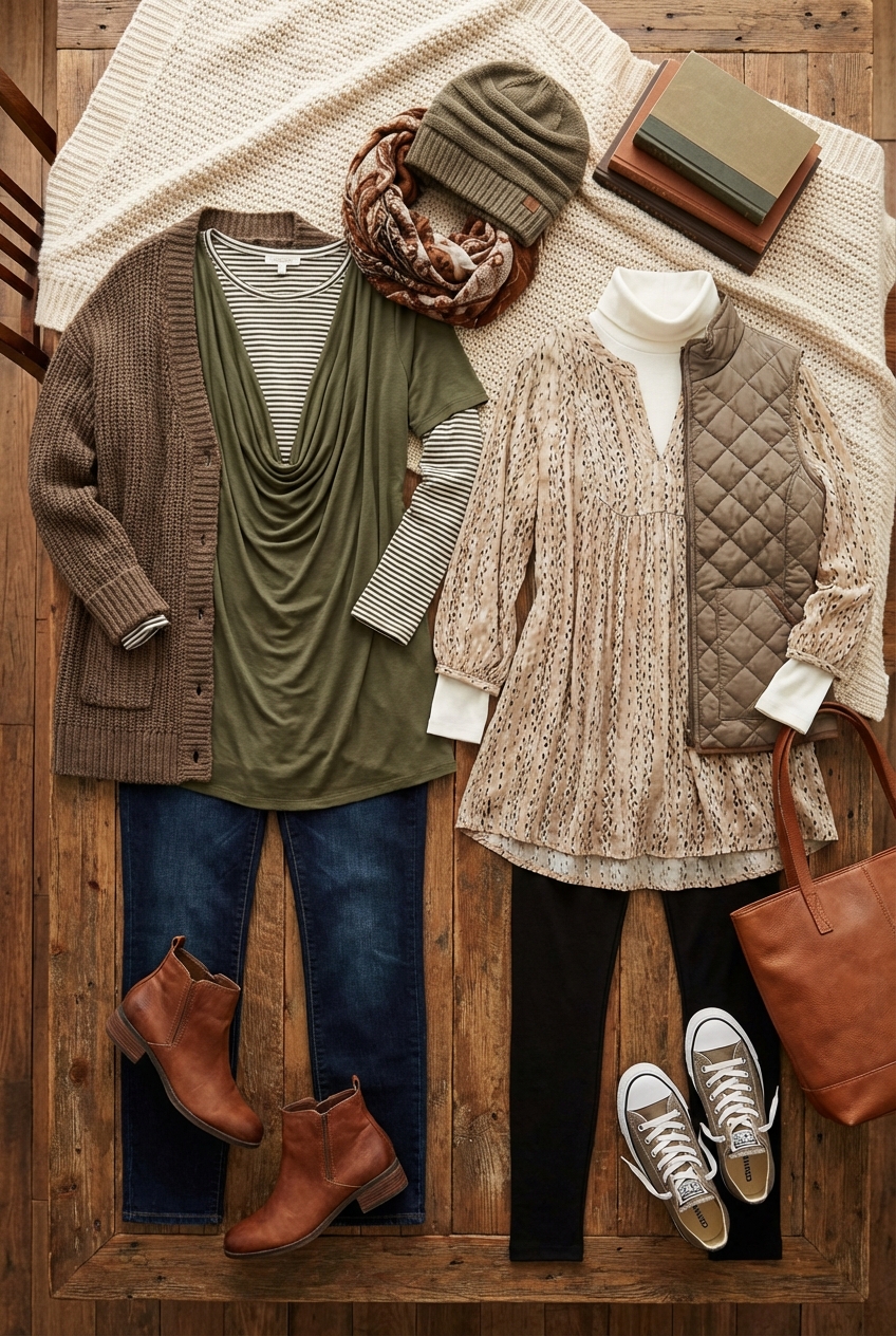 * The Fix: Choose a cardigan that is significantly longer (mid-calf) or a structured blazer that provides a hard contrast to the soft tunic.