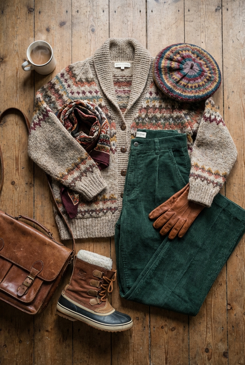 When selecting a Fair Isle knit, look for patterns that circle the yoke (the area around the neck and shoulders). This draws the eye upward and frames the face. In terms of composition, you should prioritize natural fibers like wool, mohair, or cashmere. Vintage acrylics from the 60s and 70s can be durable, but they do not breathe, meaning you will sweat indoors and freeze outdoors.