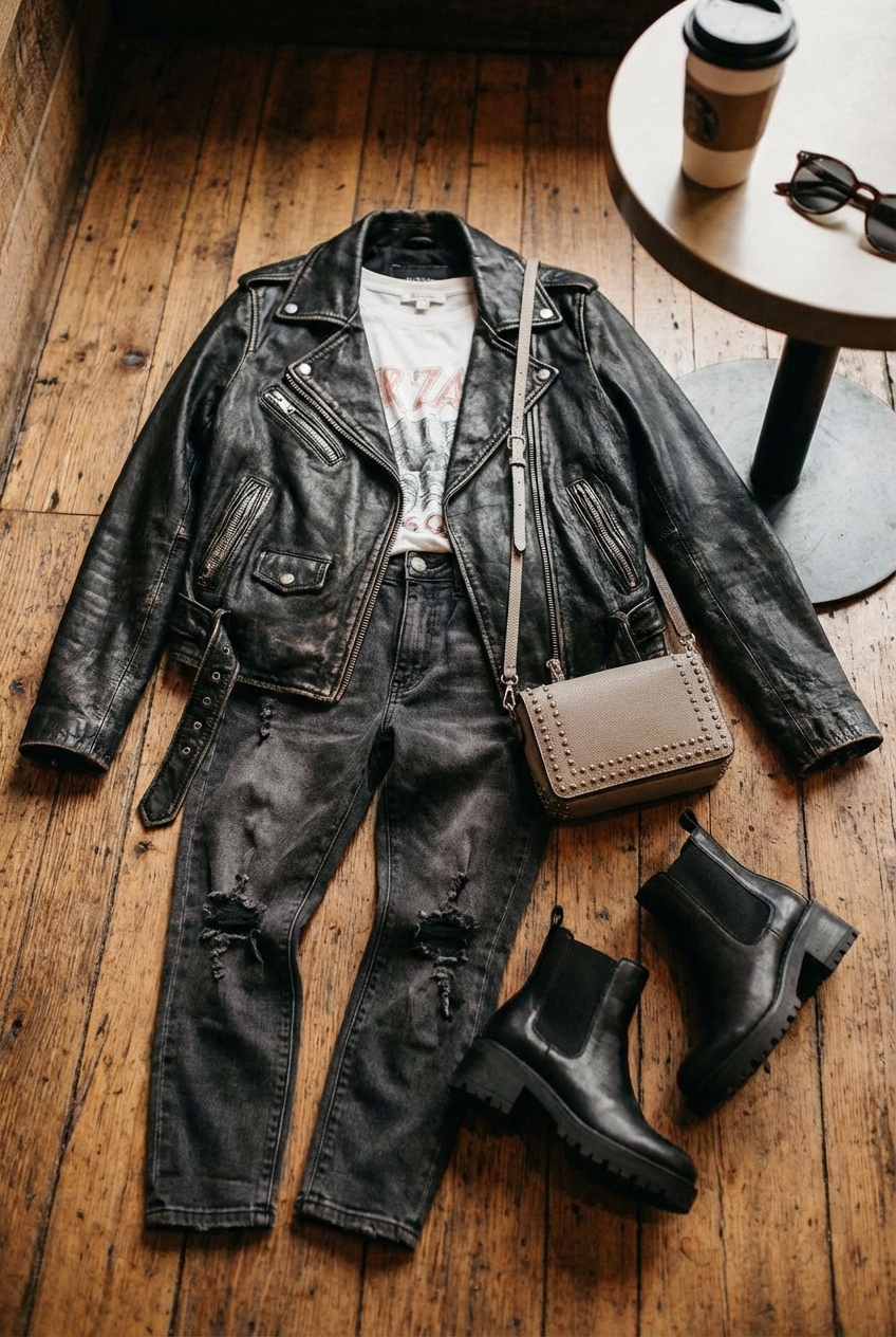 Now that you have the perfect jacket, styling it requires balancing textures and proportions. The goal is to create tension between the tough leather and other elements of your outfit.