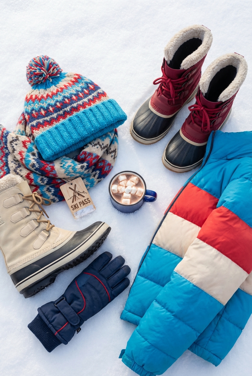 Accessories are the finishing touches that tie the look together, but in snow, they are vital survival tools. The “hardware” includes gloves, hats, and socks.