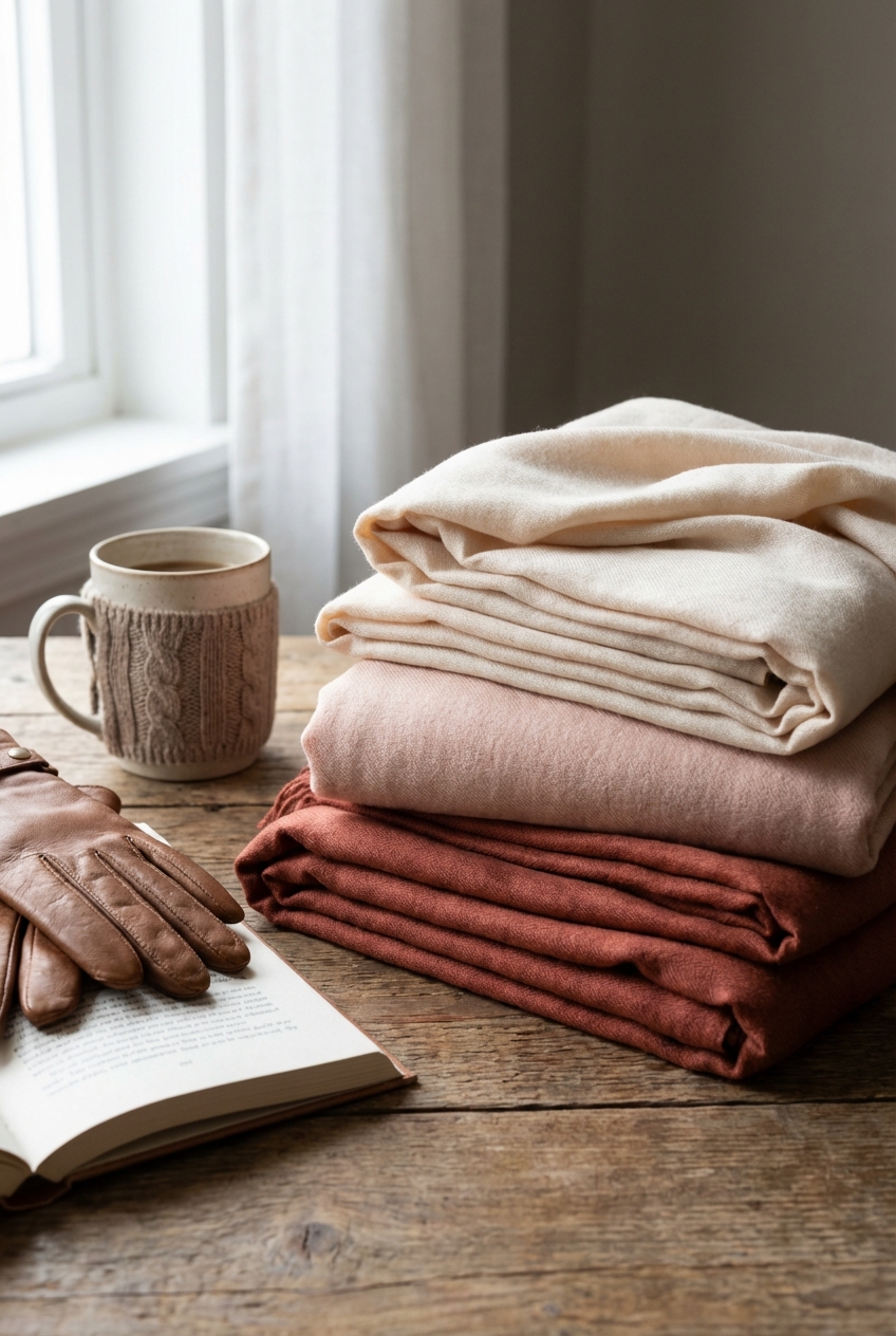For winter styling, I always recommend lighter, creamier tones to counteract the often dull, grey lighting of the season. A soft oatmeal, champagne, or blush pink pashmina acts like a reflector board used in photography.