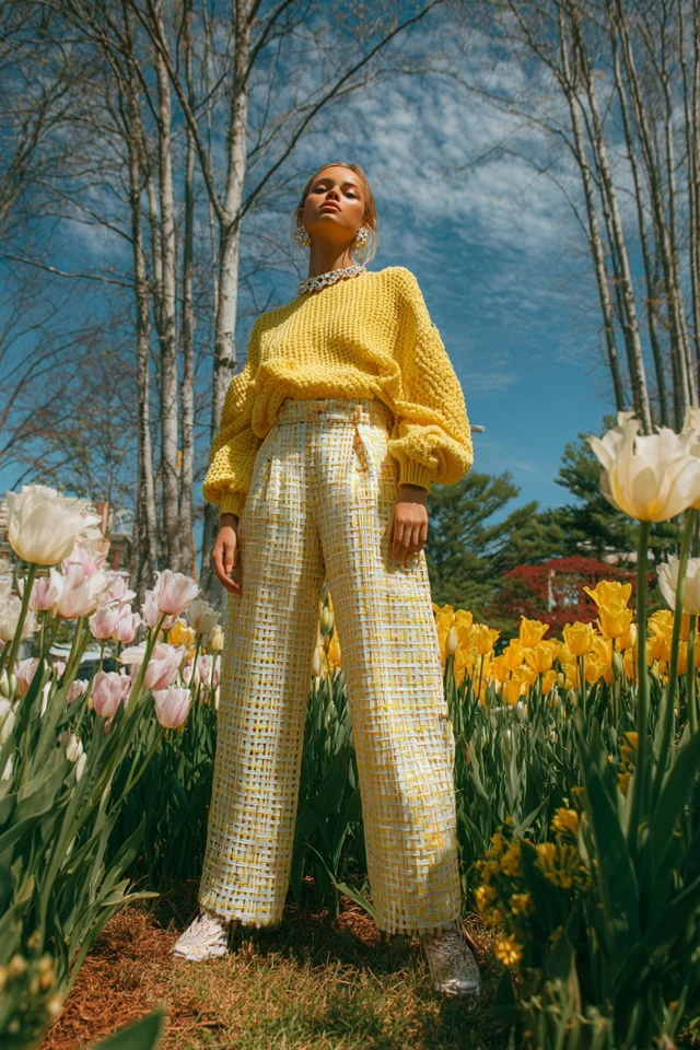 Natural fabrics like cotton, silk, and linen breathe well in spring and complement bold colors by enhancing their vibrancy. Additionally, explore textures—such as a silk blouse versus a linen one—to suit occasions and comfort levels.