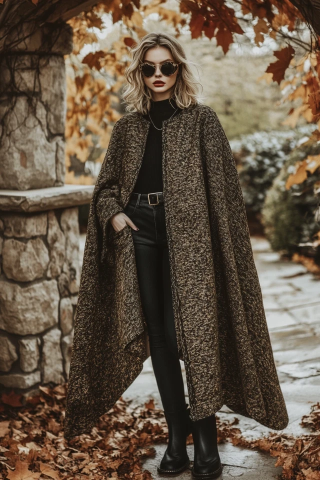 - Balance Your Proportions: Pair a voluminous cape with fitted pants or leggings to create a balanced silhouette.