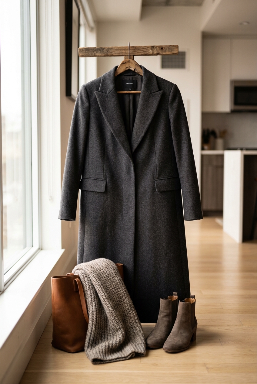 Because structured coats are often matte wool, introduce conflicting textures underneath. Leather trousers, silk slip skirts, or chunky cable knits create necessary visual friction. This prevents the outfit from looking flat.