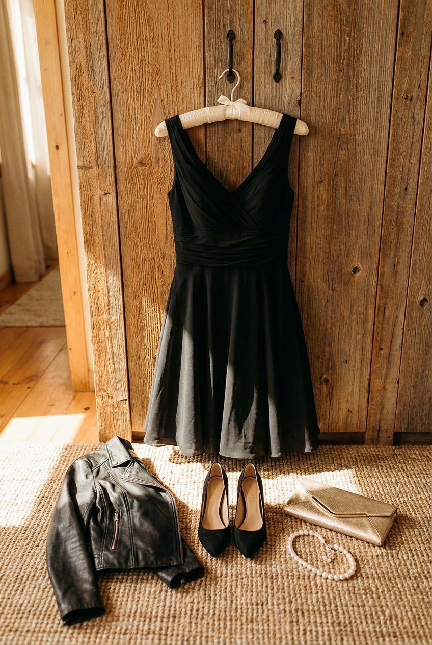 Proportions make or break the sophistication of a black dress. As a general rule of thumb in high-end styling, we follow the “Rule of One.” You should only reveal one major zone of skin at a time. If the hem is short, the neckline should be high or long-sleeved. If the dress is backless or low-cut, the hem should fall below the knee.