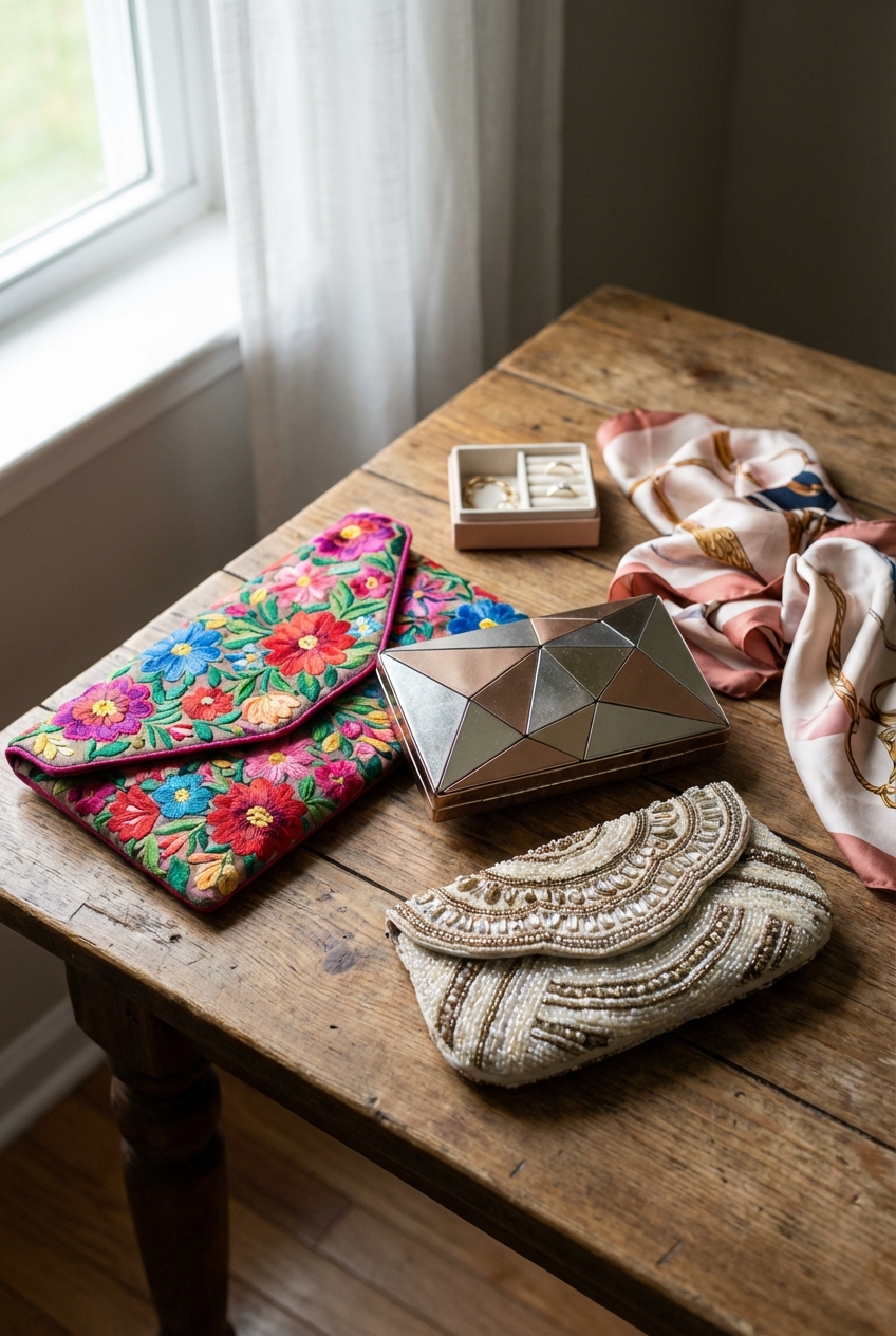 In my styling practice, I often use the Rule of Opposites to create interest. If the dress is highly textured (like lace or sequins), choose a sleek, smooth clutch (like acrylic or satin) to provide a place for the eye to rest. If the dress is minimal and smooth (like crepe or silk), that is your green light to go wild with a heavily embellished, textured bag.