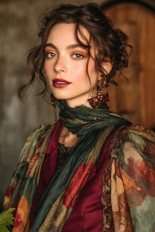 Wearing layered fabrics in fall colors like rust red, burnt sienna, and moss green taps into seasonal emotional cues—comfort, warmth, and a touch of nostalgia. These hues help reduce anxiety and boost approachability, which is why incorporating them in your vintage layerings, such as mixing a soft wool sweater with a silk scarf, can lead to increased social ease and confidence.