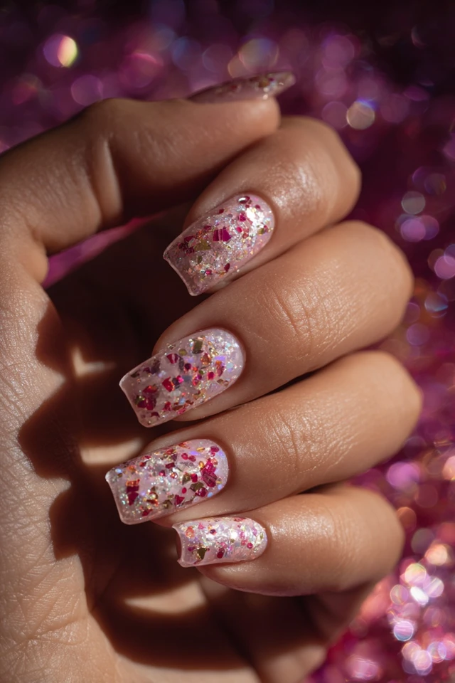 - Layering styles: Experiment with layering transparent glitters or pearls over vivid shades for dimension, or use tape guides for precision color blocking.